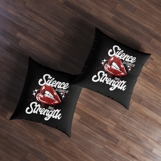 Silence Is Strength, Square Tufted Floor Pillow