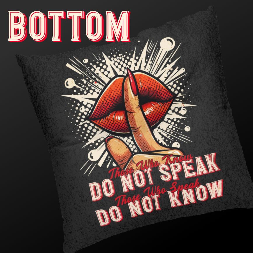 Unleash the power of silence with this Don't Know Don't Speak, square floor pillow. Perfect for those who appreciate the finer things in life and understand the value of keeping quiet. Allow the message of this floor pillow to remind you and others of the importance of discretion and tact.