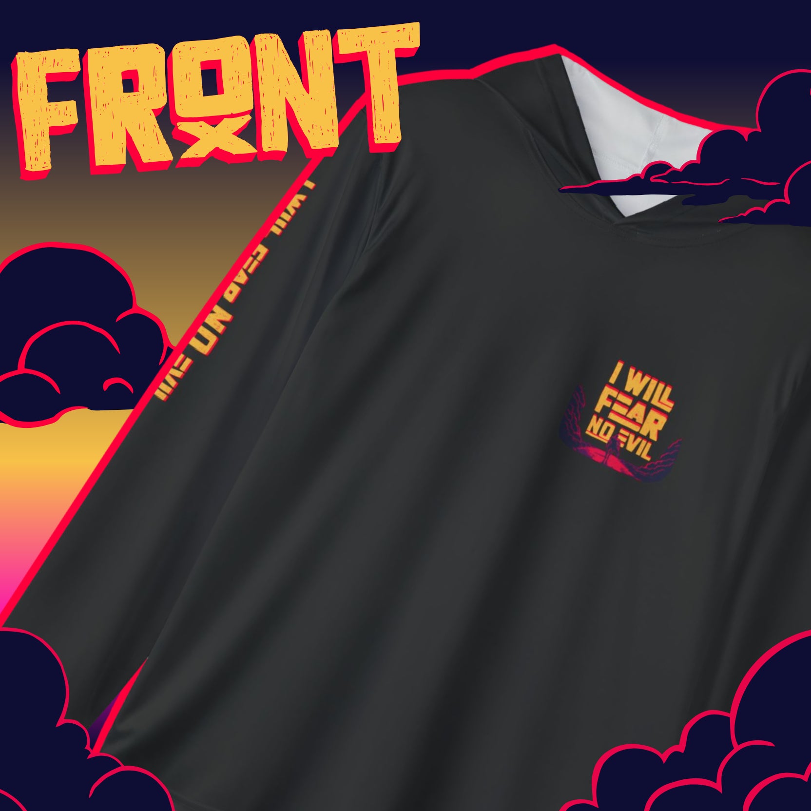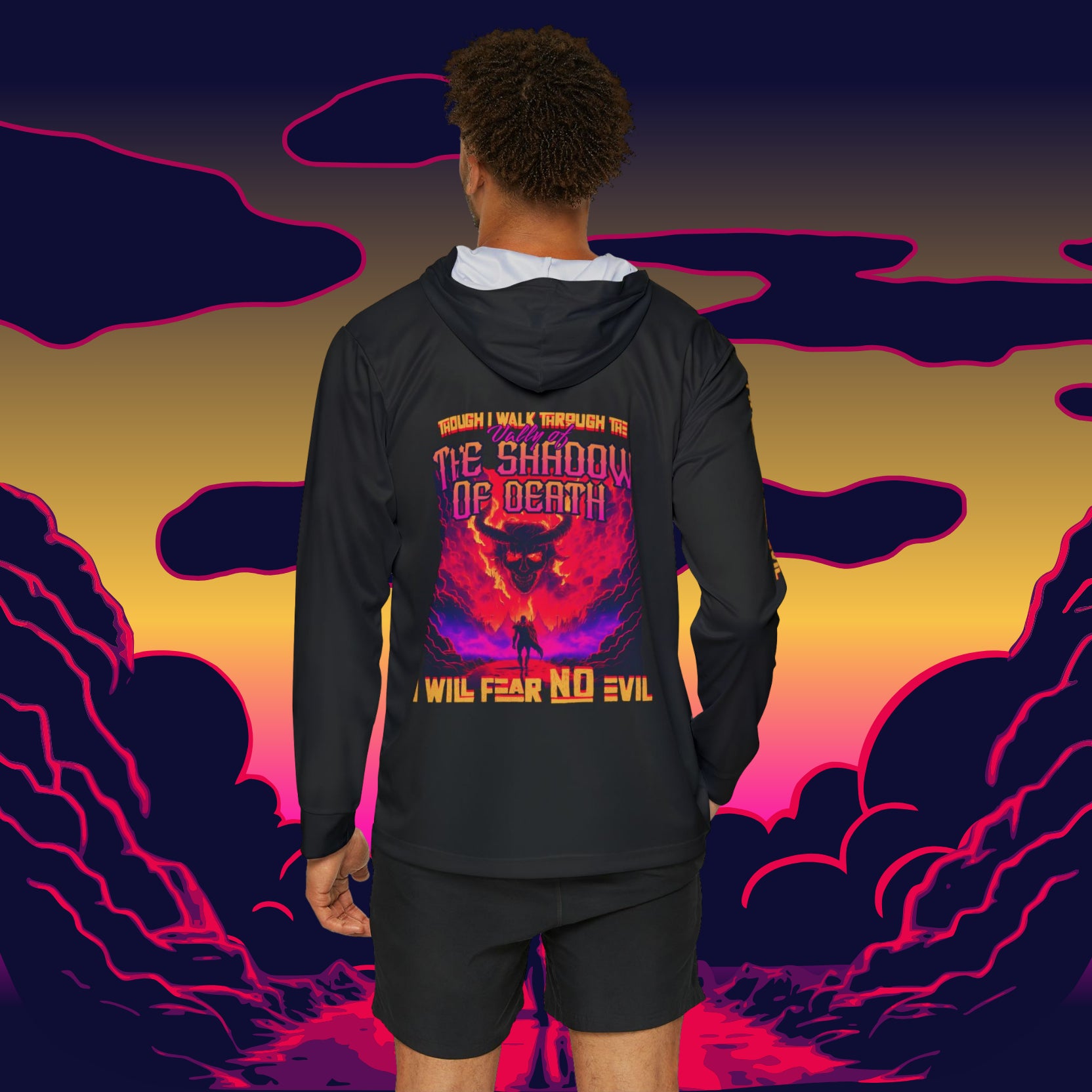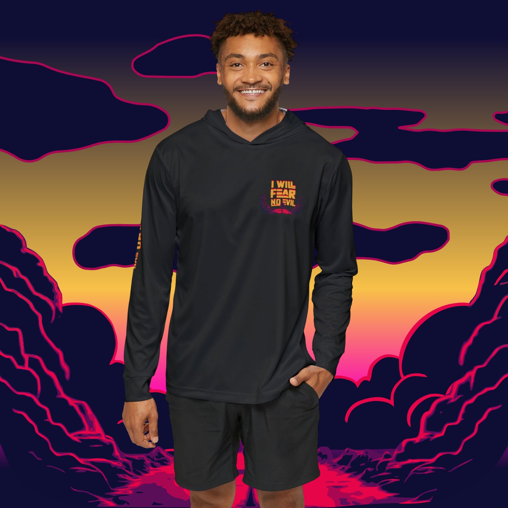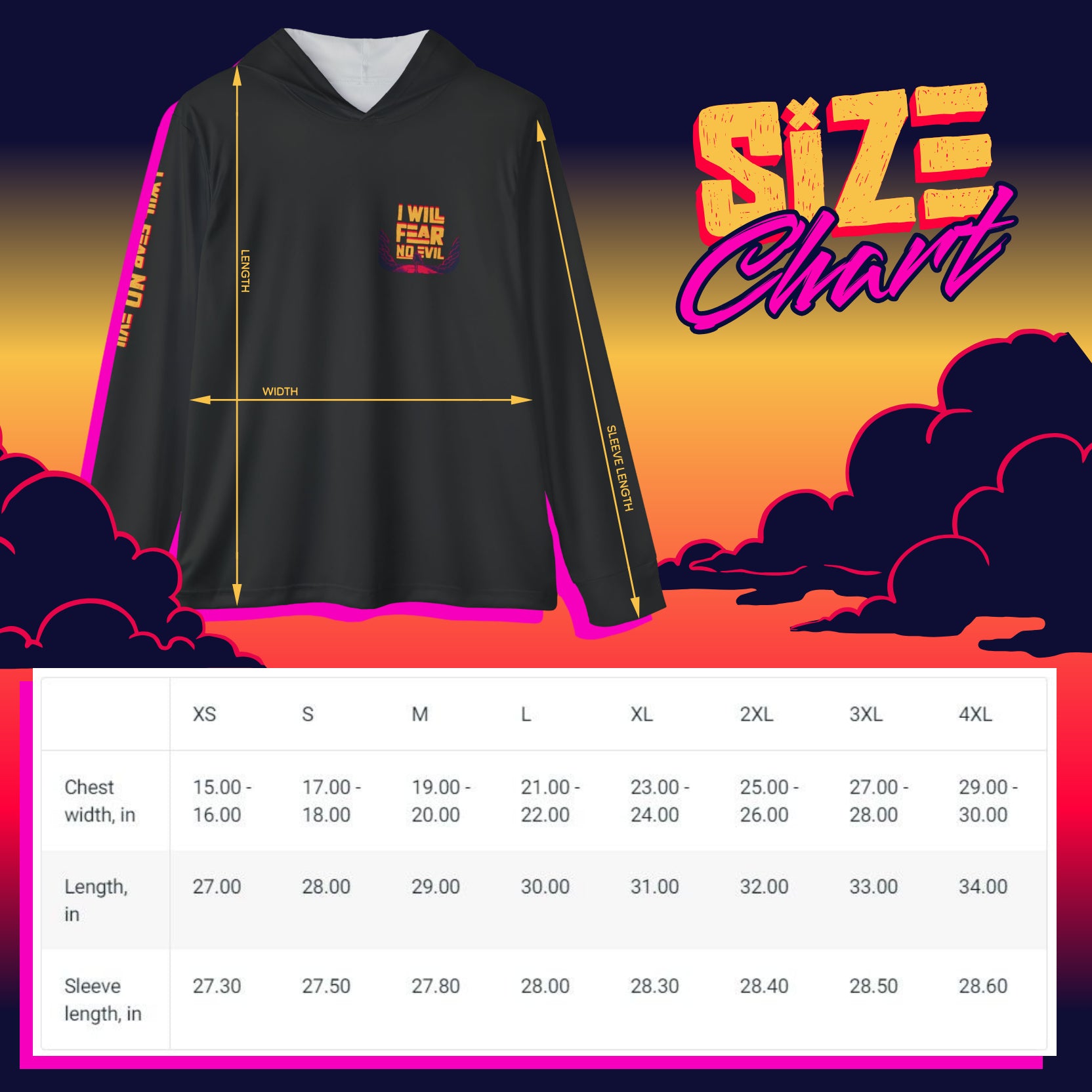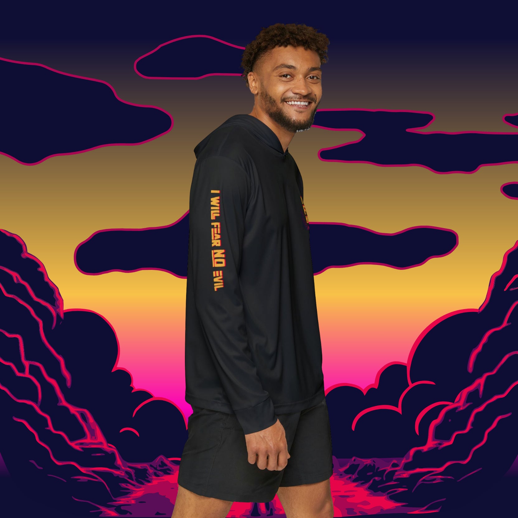 This Fear No Evil Sports Warmup Hoodie will empower you to tackle any challenge! It offers UPF 50+ sun protection, moisture-wicking properties, and a breathable design, making it ideal for hiking, working out, cycling, and running. Stay confident and fearless!
