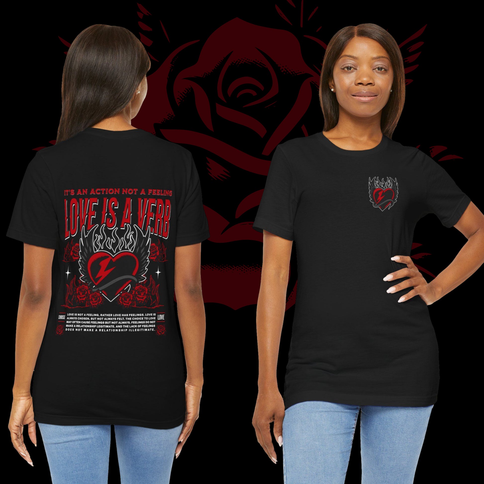 💖Love Is A Verb, Unisex Jersey Short Sleeve Tee