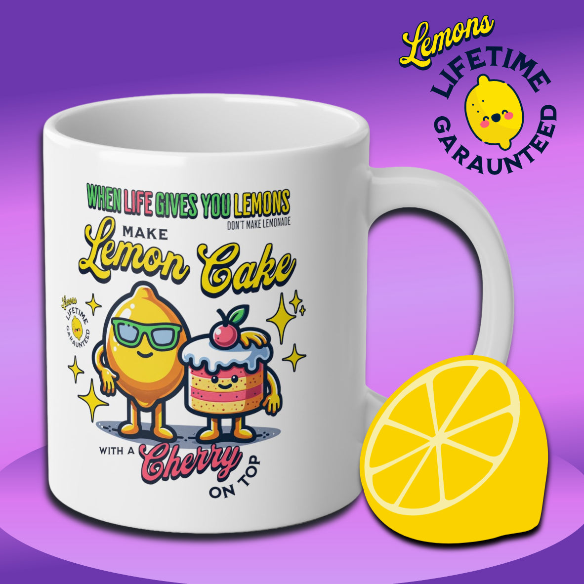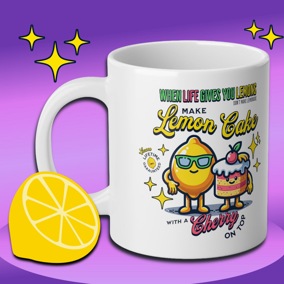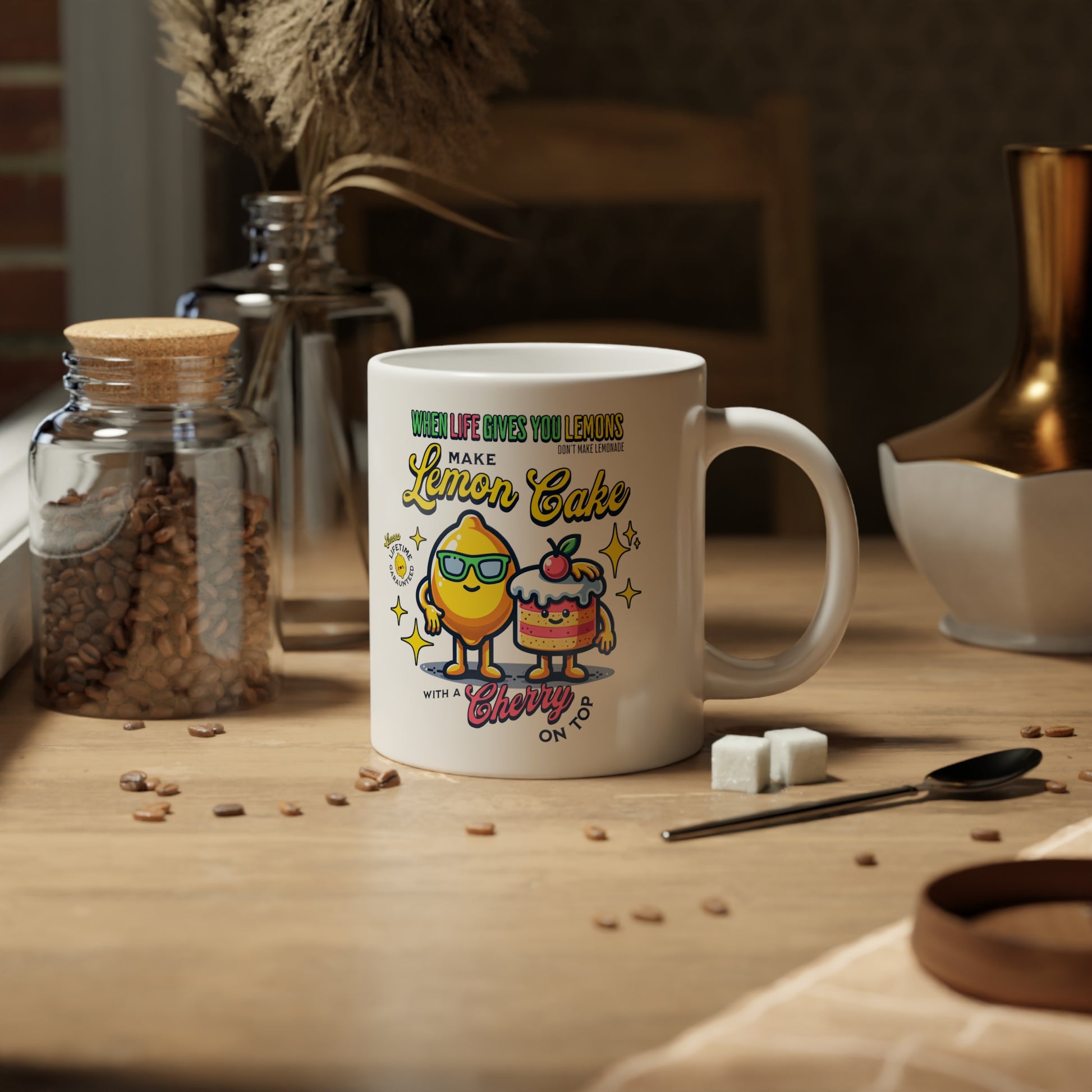 Turn life's lemons into something special and delectable - such as a lemon cake with a cherry on top. Don't let obstacles stop you, adopt a mindset of positivity and savor each moment with this 20oz mug.