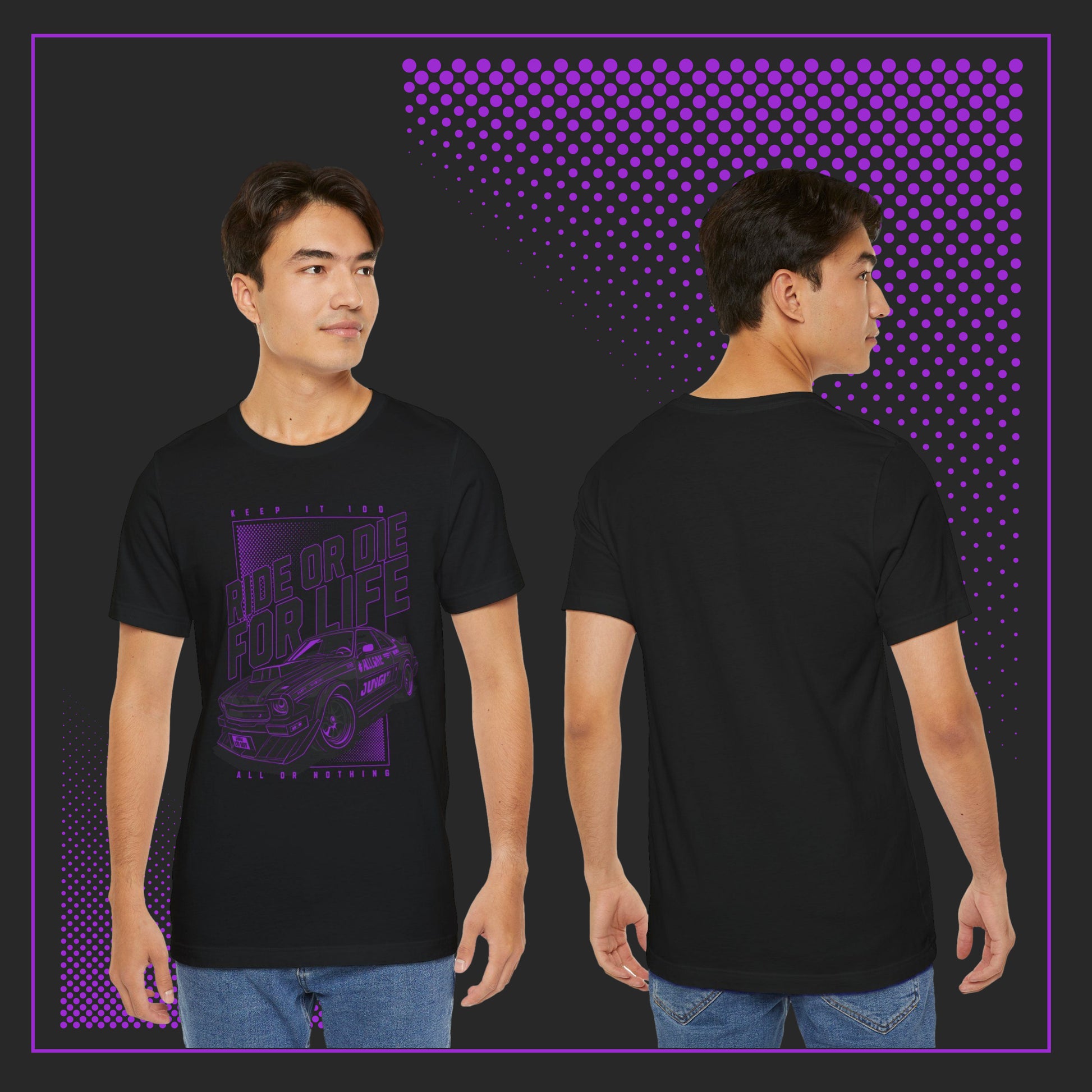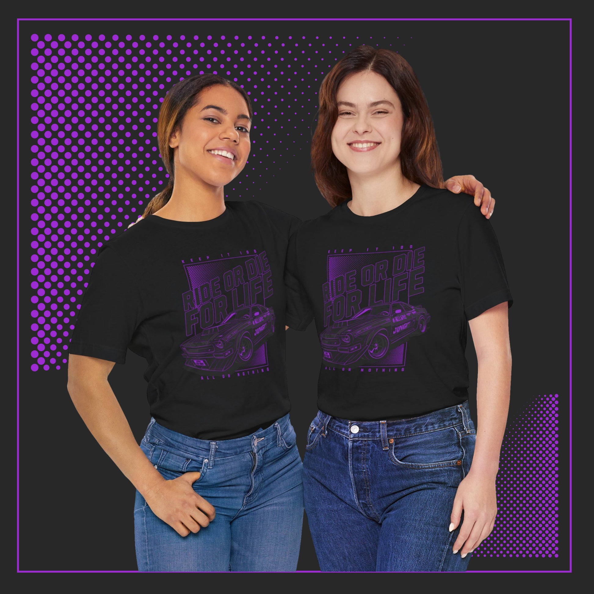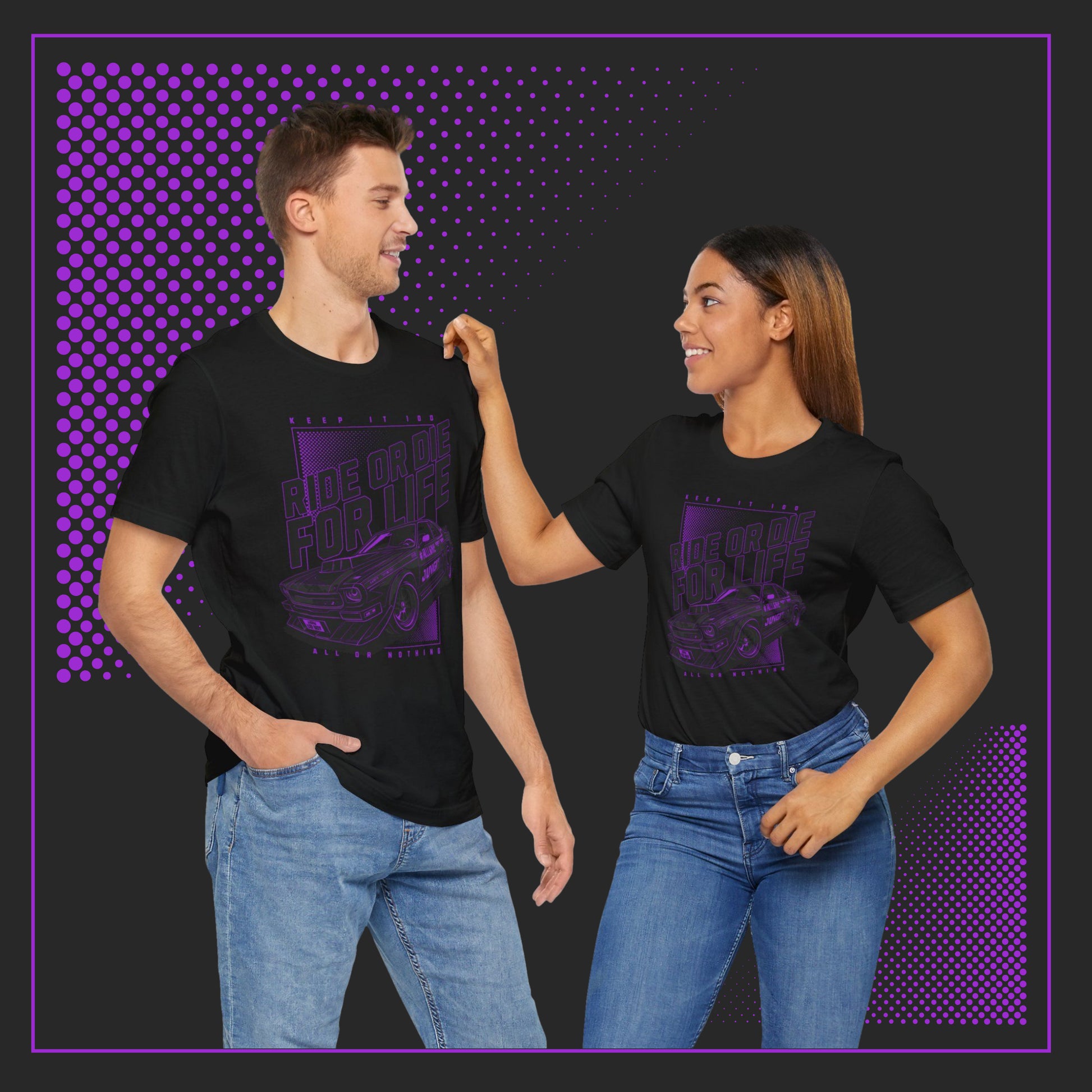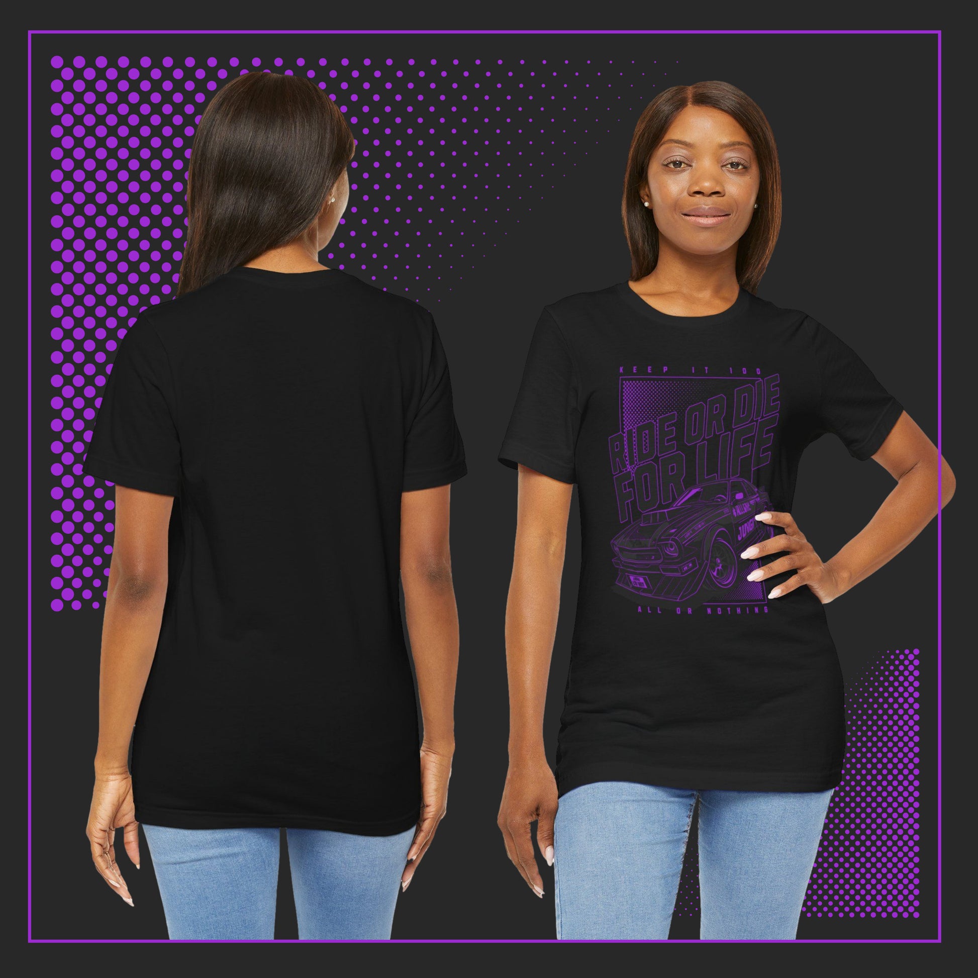 Shift into a Ride or Die mentality with this unisex jersey short sleeve tee. Made with soft cotton and quality print, it's bound to become a beloved favorite. Featuring ribbed knit collars for shaping and tapered shoulders for a perfect fit, this tee will keep its shape wear after wear. Don't miss out on adventure, get yours now!